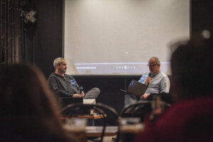 Pred projekcijo je potekal pogovor, ki ga je vodil Igor Vidmar, njegov sogovornik pa je bil montažer filma Jurij Moškon. Obiskovalci so tako dobili zanimiv vpogled v nastajanje filma in zakulisje ustvarjalnega procesa.